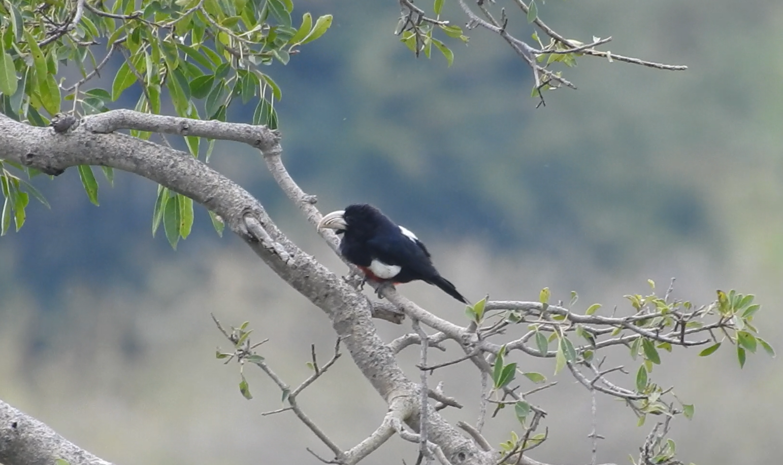 "One of the least well known of all the barbets". Op die ene website die door vogelaars wereldwijd wordt gebruikt staan slechts 153 meldingen. Dat zijn er 90 meer dan de Congo Pauw, om maar wat te noemen... Tja, wie gaat er ook op vakantie naar de delen van Tsjaad, de Centraal Afrikaanse Republiek, Soedan en Zuid-Soedan? De soort komt verder in een klein deel van noordelijk Oeganda voor, waarvan het grootste deel in noordwest Oeganda blijkbaar nog niet zo veilig is. Te Kidepo is de soort nu ook niet algemeen te noemen. Deze vogel kwam op een boom vol vijgen af. Een mazzeltje! |