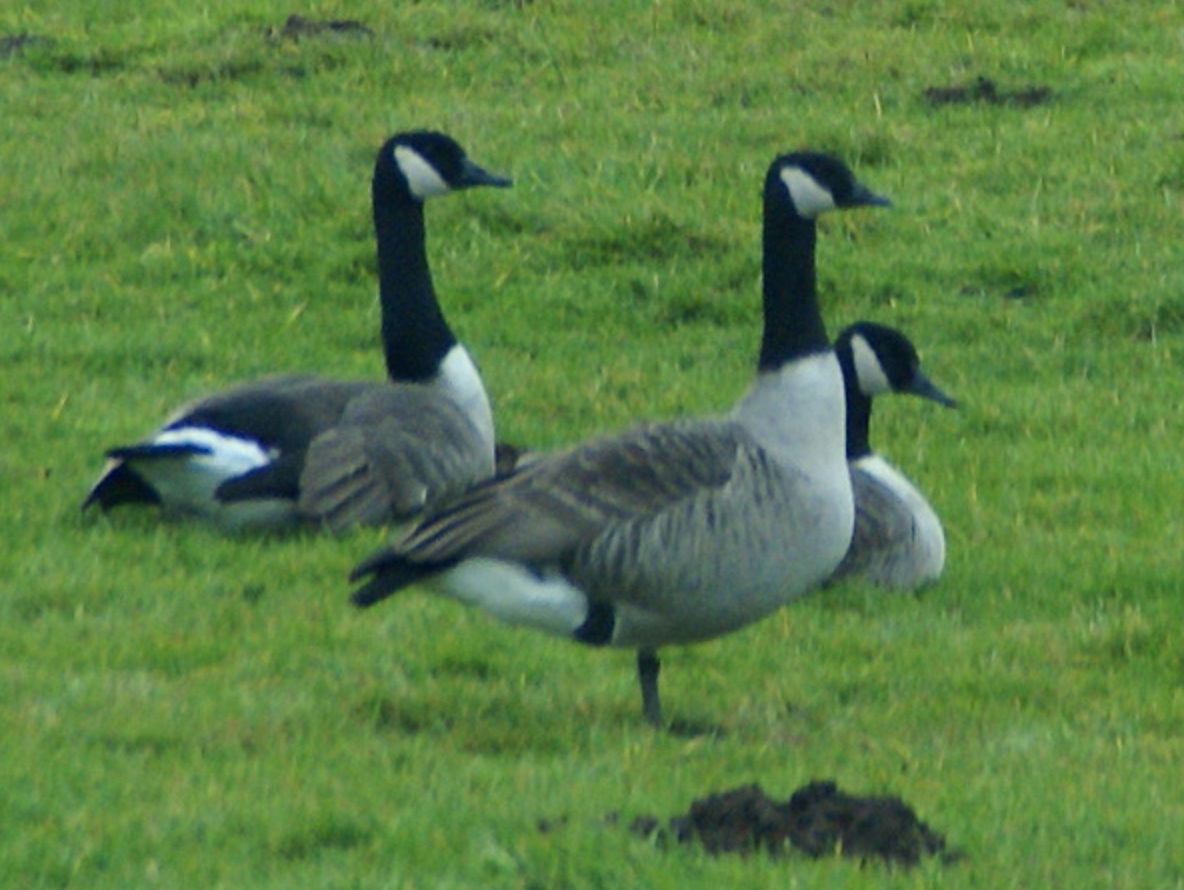 Op de foto zie ik een Canadese Gans met compact snaveltje en korte hals (op de foto gestrekt); vergelijk het zwart met de vogel linksachter. Dit past m.i. niet op de nominaat van Grote Canadese Gans (waar alle Nederlandse GCG toe worden gerekend) en wel bij Kleine Canadese Gans. Een bleke borst en steil voorhoofd zijn kenmerken voor Hutchins' Canadese Gans.