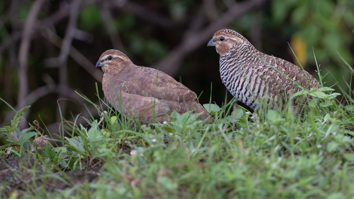 Pair of Rock Bush Quail Perdicula argoondah meinertzhageni, near Ajmer, India, 1 August 2025 (Jaap Hennevanger)