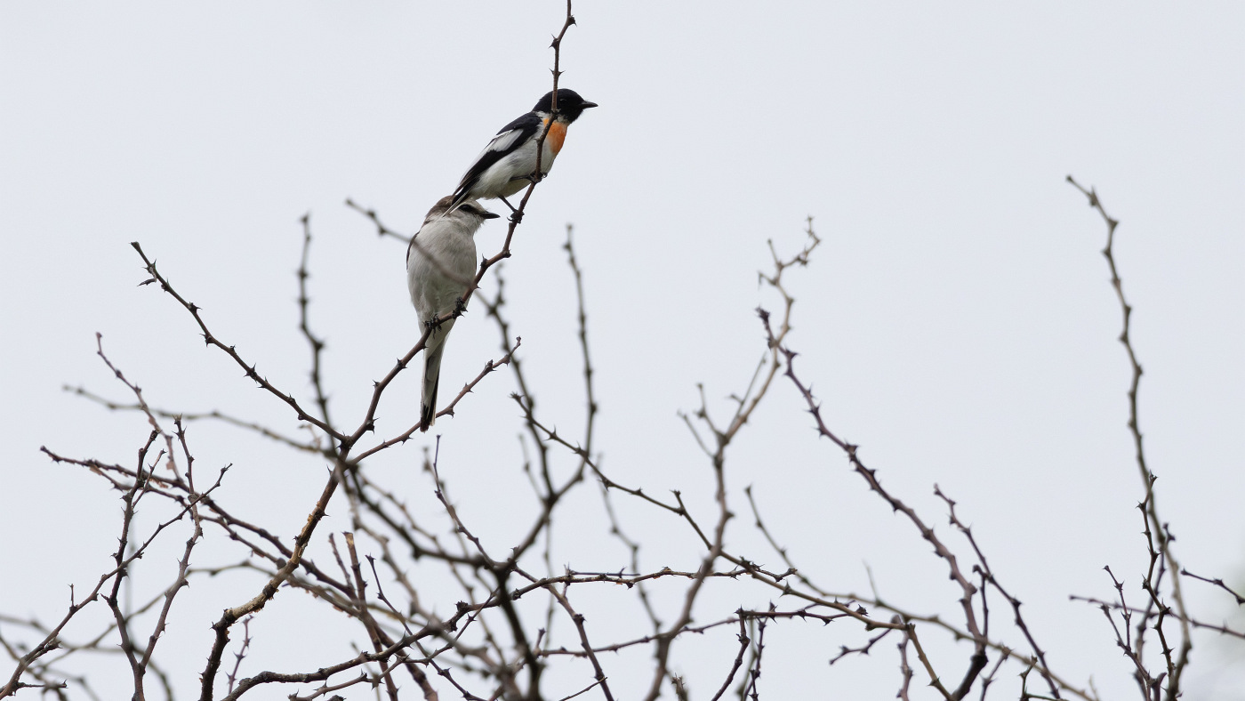Pair of White-bellied Minivet Pericrocotus erythropygius, Pushkar, India, 2 August 2025 (Alwin van Lubeck)