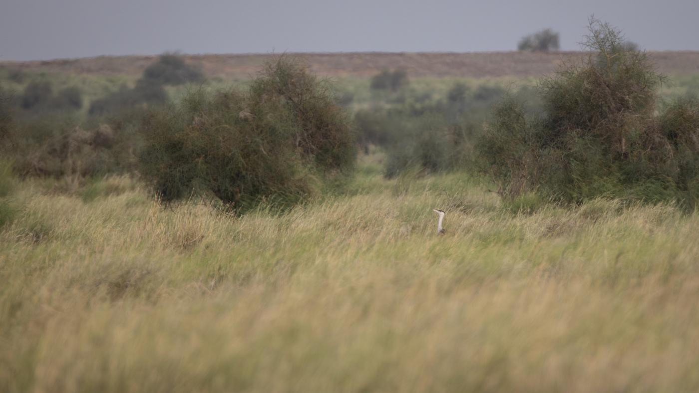 Female Great Indian Bustard Ardeotis nigriceps, Desert National Park, Jaisalmer, India, 5 August 2025 (Jaap Hennevanger)