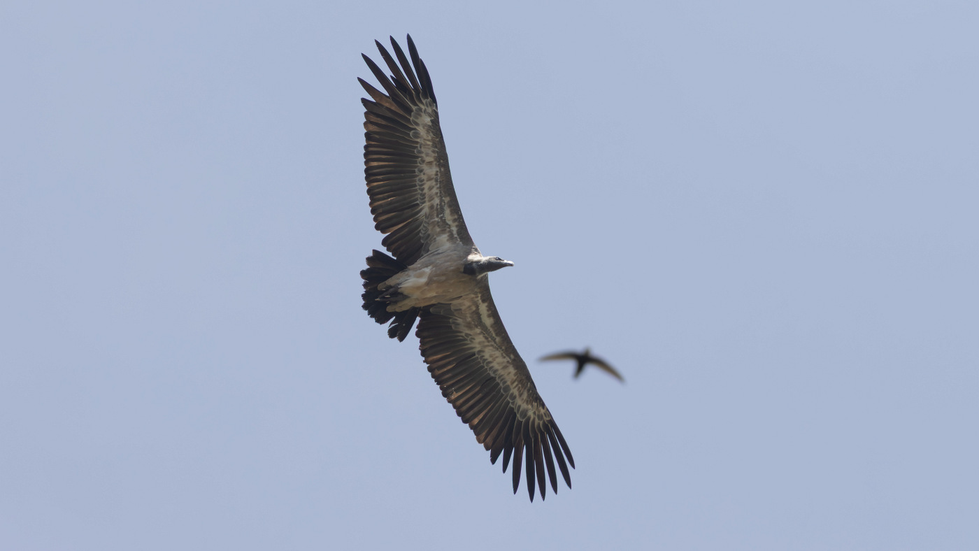 Indian Vulture Gyps indicus and Little Swift Apus a. affinis, west of Alwar, India, 13 August 2025 (Alwin van Lubeck)