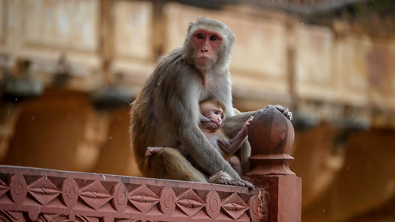 Female Rhesus Macaque with infant Macaca mulatta, Jaipur, India, 30 July 2025 (Paul Schrijvershof)