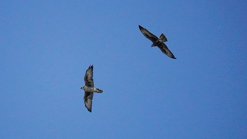 On 5 Aug 2025 we picked up our local guide Uras Khan (no English) and headed to Desert National Park, closed off to visitors in summer. However, with Uras we were allowed to access the perimeter road and we soon found Variable Wheatear, Rosy Starlings, Rufous-tailed Lark, Black-crowned Sparrowlark, Rufous-tailed Scrub Robin, Indian Gazelles, Short-toed Snake Eagle and our first White-browed Bush Chat, an endangered local specialty. Our guide even managed to spot a distant male Great Indian Bustard within 1.5 hours! This distant yet impressive bird at some point flew off out of sight over the hills, but right then locals told us of a group of three they’d seen a few km’s further. Upon arriving at that spot we were able to watch a pair a good bit closer – though still about 600m away – giving us great views through the scope of the birds strutting, feeding and preening. Again, we had scored all targets in less than a full morning – it got even better when an adult Red-headed Vulture flew overhead, another bird that has become increasingly rare in recent years and one we were not expecting to see this trip.