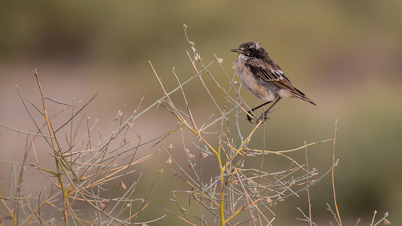 White-browed Bush Chat Saxicola macrorhynchus, Desert National Park, Jaisalmer, India, 5 August 2025 (Jaap Hennevanger)