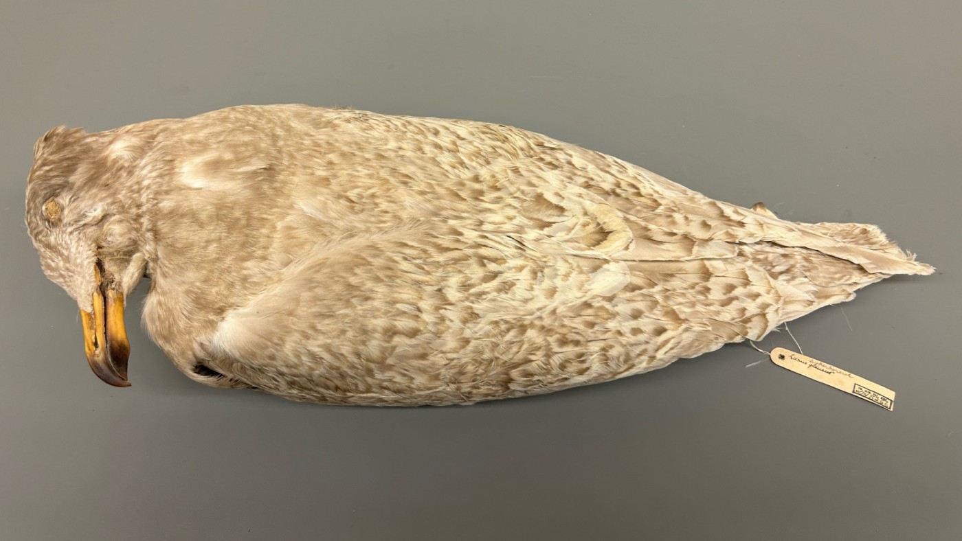 Grote Burgemeester Larus hyperboreus. De bijna twee eeuwen oude balg ziet er nog heel redelijk uit. (Peter Capainolo)