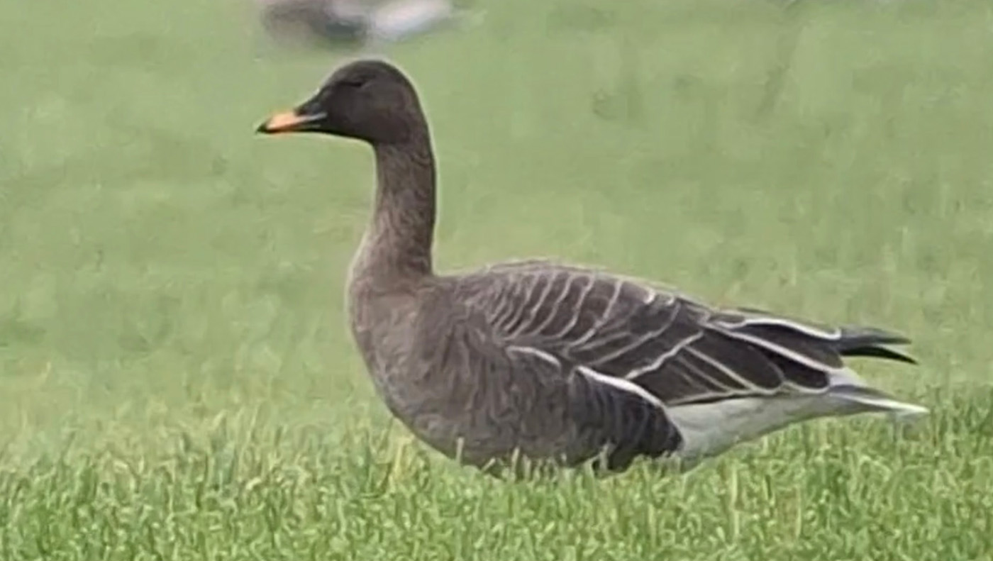 De "bende van Breskens" de Witbuikrotganzen van Zeeuws-Vlaanderen, zwol weer aan tot 30 stuks. Daarbuiten waren er alleen één- en tweetallen, in Zeeland, Noord-Holland en op de Waddeneilanden. Bendes van Zwarte Rotganzen werden niet gezien, maar wel vier afzonderlijke exemplaren bij Zevenhuizen op Texel die niet speciaal tot een "bende" leken te horen. Verder waren er vooral eenzame exemplaren aan de kusten van de Waddenzee en Zeeland. Dat er in 58 uurhokken Roodhalsganzen werden gezien, met de meerderheid van de waarnemingen niét aan de kust, dat geeft toch ook een beetje te denken. Het is alleen de vraag wát het is waaraan het ons doet denken. Het is natuurlijk een opvallende en veel gehouden soort, maar er is wel degelijk een seizoenspatroon, met in de zomer zo'n 50 tot 100 x minder waarnemingen dan in de winter. Of is dat een patroon dat in stand wordt gehouden doordat we in de zomer met zijn allen écht niet naar ganzen gaan kijken...? Op 3 december werd een ongeringde Ross' Gans gezien bij Hoogezand (Gr), die op 17 en 19 december daar vlakbij ook werd gezien. Flink wat vogelaars namen de moeite om de Ross' Gans in het Binnenveld bij Rhenen (U) te gaan bezoeken, die daar en daar in de buurt, in de Wageningse uiterwaarden, van 20 tot 27 december verbleef. Na het bestuderen van de foto's van de vogel, waarop een aantal ontbrekende armpennen te zien waren - voor zover het ontbreken van iets als "te zien" gekwalificeerd kan worden - werd duidelijk dat het niet zeker was of de vogel zich nog als "wilde aankomst" mocht kwalificeren. Een betere kandidaat liet zich in de Brabantse Biesbosch zien, van 29 tot 31 december. De Taigarietgans mag zich tegenwoordig zo ongeveer de zeldzaamste van de Nederlandse ganzensoorten noemen, in ieder geval zeldzamer dan Zwarte en Witbuikrotgans, Roodhalsgans en Dwerggans. Het is dus de moeite waard en ook leuk om de soort te gaan zoeken op de "bekende" overwinteringsplekken in Drenthe en bij Onstwedde, Stadskanaal en Alteveer in het oosten van Groningen. Enige exemplaren en kandidaten werden inderdaad gevonden. Hieronder is een foto te zien van een exemplaar uit november.