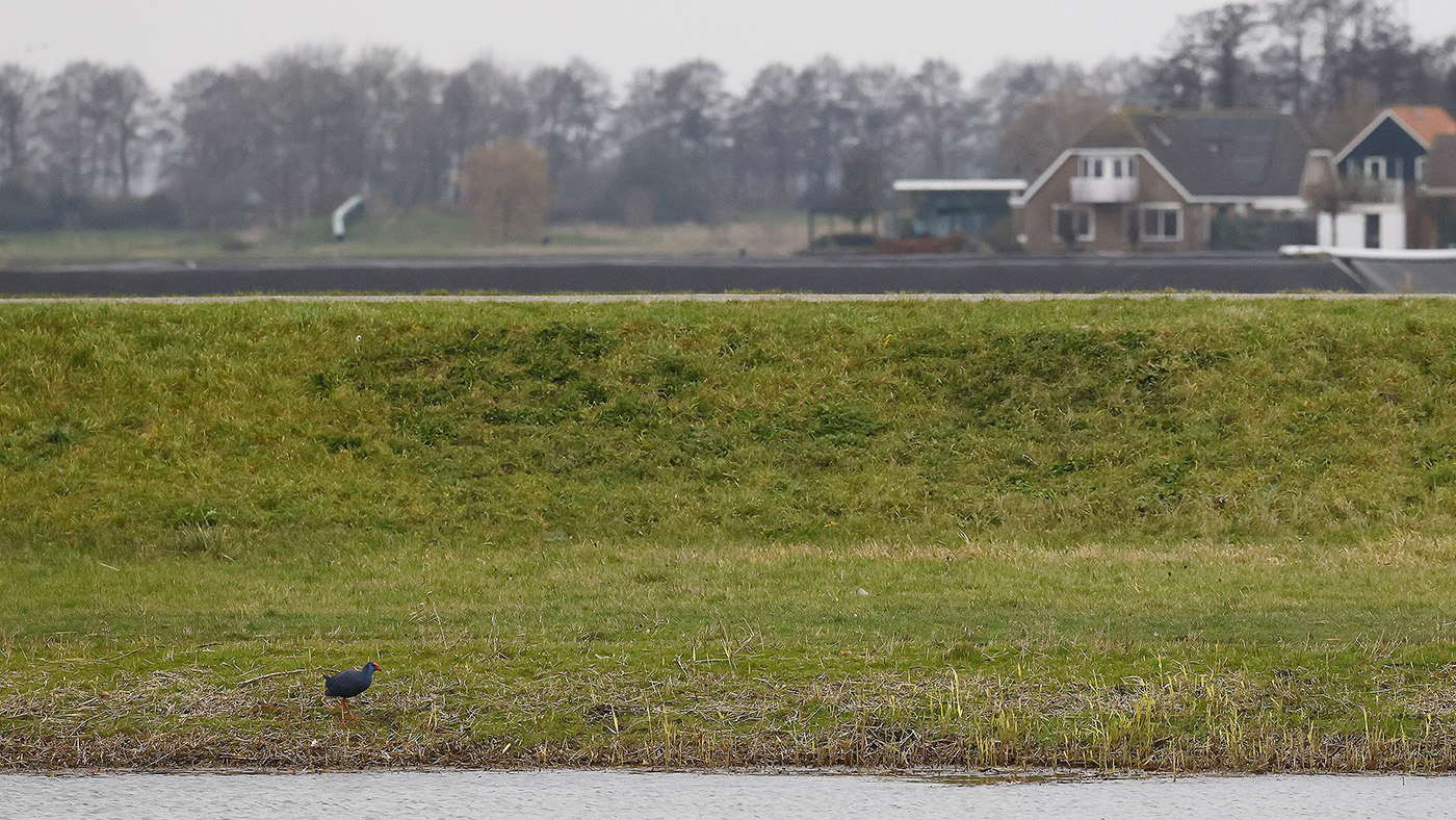 De derde Purperkoet van Nederland was nog tot 23 december waar te nemen in de Eendragtspolder in Zevenhuizen (ZH). Het leek erop dat de vogel op die dag de benen heeft genomen, kijkt u maar eens naar de foto hieronder. Een paar dagen later was de boel hier dichtgevroren. Een vooruitziende blik?