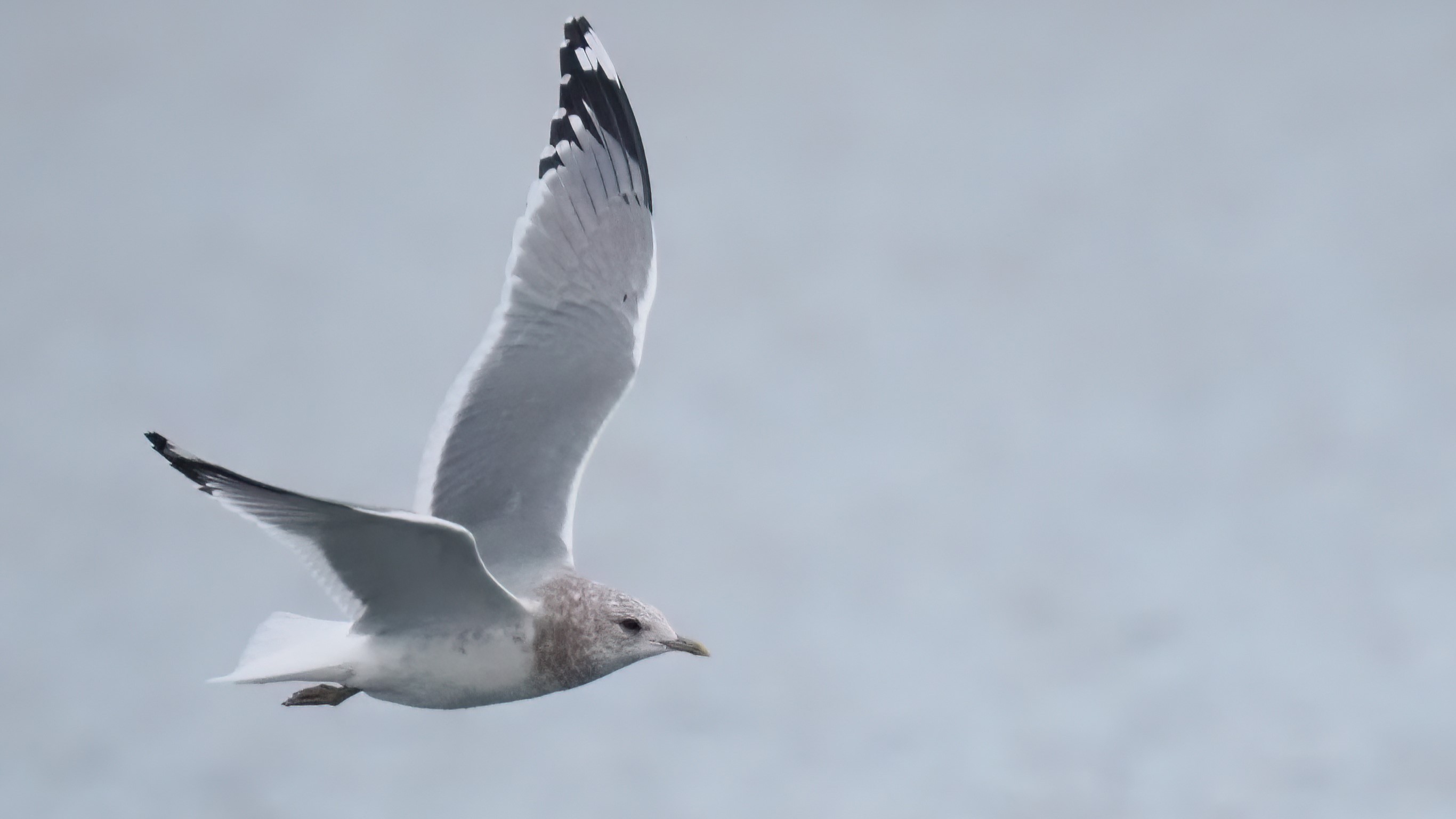 Amerikaanse Stormmeeuw Larus brachyrhynchus, Miðvágur, Faeröer Eilanden, 5 januari (Silas Olofson)